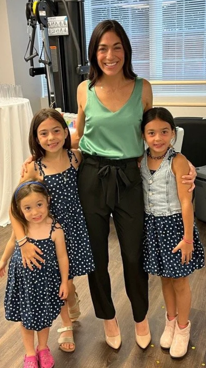 She lives in Vienna, VA with her husband and three daughters, and loves staying active through running, Pilates, and cheering on her kids' sports teams.